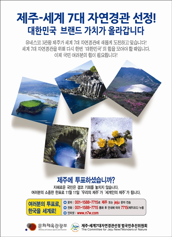 Á¦ÁÖ-¼¼°è 7´ë ÀÚ¿¬°æ°ü ¼±Á¤ ÅõÇ¥¹æ¹ýÀº ÀüÈ(001-1588-7715 »ß ¼Ò¸® ÈÄ 7715¸¦ ´©¸£°Å³ª, ¡®Á¦ÁÖ¡¯ ¶Ç´Â ¡®jeju'¶ó´Â ¹®ÀÚ¸¦ °°Àº ¹øÈ£·Î Àü¼ÛÇϰí Á¾·á)¿Í ÀÎÅͳÝ(www.jejun7w.com¤ý¹Ù·Î °¡±â Ŭ¸¯)À» ÅëÇØ 11¿ù11ÀÏ ¿ÀÈÄ 8½Ã11ºÐ±îÁö ÁøÇàµÈ´Ù. <<Çѱ¹Áö¿ª½Å¹®Çùȸ °øµ¿±â»ç>>