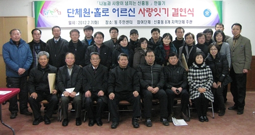 ÇÑÆí, ½ÅÈﵿ ÁÖ¹ÎÀÚÄ¡À§¿øÈ¸¸¦ ºñ·ÔÇÑ 8°³ ÀÚ»ý´Üü ÀÓ¿øÁø 27¸íÀº Áö³´Þ 27ÀÏ »ç¶ûÀÇ ¿¬°á°í¸®¸¦ ÅëÇÑ ³ª´®»ç¾÷¿¡ Âü¿©ÇÏ°í º¹ÁöÁõÁø¿¡ ±â¿©Çϱâ À§ÇØ ´Üü¿ø°ú Ȧ·Î »ç´Â ¾î¸£½ÅÀ» ´ë»óÀ¸·Î ¡®»ç¶ûÀÇ ²ö Àձ⡯ ¹ß´ë½ÄÀ» °¡Á³´Ù°í ½ÅÈﵿ Áֹμ¾ÅÍ(µ¿Àå ¹ÎÀå½Ä¤ý¢Ï032-625-7734)´Â ÀüÇß´Ù. |