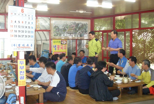 ºÎõ¼Ò»ç°æÂû¼(¼Àå Á¶Ç×Áø)´Â 11ÀÏ ¿ÀÀü ¸ð¹ü¿îÀüÀÚȸ, ³ì»ö¾î¸Ó´Ïȸ µî 35¸íÀ» ÃÊû, ¼ºÁÖ»êÀ» µî¹ÝÇϰí Á¡½É½Ä»ç¸¦ ÇÏ¸é¼ °Ý·ÁÇÏ´Â ÀÚ¸®¸¦ ¸¶·ÃÇß´Ù. |