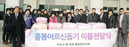 ¡ãºÎõ½Ã º´¿ø°ü¸®ÀÚȸ(ȸÀå ±è¹æ°ï)¿¡¼µµ °ü³» Ȧ¸ö ¾î¸£½Å 50¸í¿¡°Ô µû¶æÇÑ °Ü¿ïÀ» º¸³»µµ·Ï ÀÌºÒ 50並 ºÎõ½Ã¿¡ Àü´ÞÇØ¿Í ºÎõ½Ã »õ¸¶À»È¸¿øµéÀÌ ¾î¸£½Å´ìÀ» Á÷Á¢ ã¾Æ°¡ ³ª´²ÁÖ¾ú´Ù. |