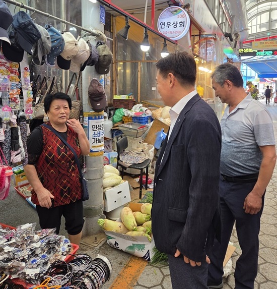 È«±âÈ­ ¼Ò»ç±¸Ã»ÀåÀÌ 1ÀÏ ¼Ò»çÁ¾ÇÕ½ÃÀåÀ» ã¾Æ »óÀεé°ú ´ëÈ­¸¦ ³ª´©¸ç ¾Ö·Î»çÇ×À» ûÃëÇϰí ÀÖ´Ù.(»çÁø= ¼Ò»ç±¸ Á¦°ø)