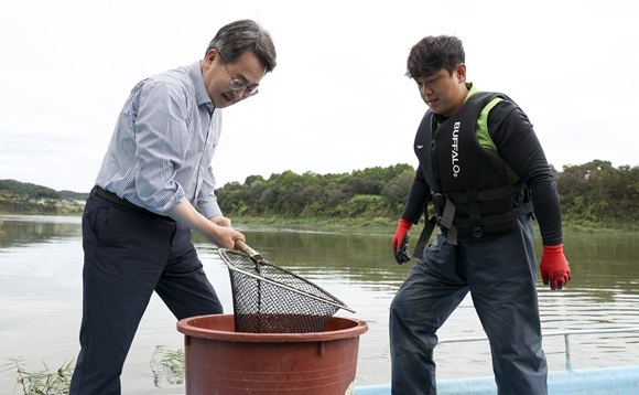 ±èµ¿¿¬ °æ±âµµÁö½Ã°¡ 14ÀÏ ¿¬Ãµ±º ¡®´Þ´ÞÅõ¾î¡¯ µµÁß ¡®ÇÑź°­ û³â¾îºÎ¡¯ ±èÀº¹ü ¾¾ÀÇ °í±ê¹è ¡®¿Õ°Ç1È£¡¯¿¡ ¿Ã¶ó ÀâÀº ¹°°í±â¸¦ »ìÆìº¸°í ÀÖ´Ù, (»çÁø= °æ±âµµ Á¦°ø)