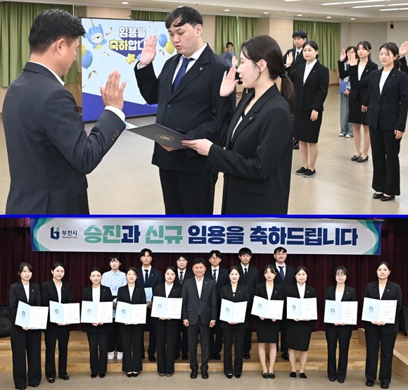 Á¶¿ëÀÍ ½ÃÀåÀº ¡°½ÂÁøÀ» ÃàÇÏÇϸç, ºÎõ½Ã °øÁ÷»çȸÀÇ »õ·Î¿î °¡Á·ÀÌ µÈ ½Å±Ô °ø¹«¿ø ¿©·¯ºÐÀ» ȯ¿µÇÑ´Ù¡±¸ç ¡°¾ÕÀ¸·Î µ¿·áµé°úÀÇ Çù¾÷°ú ¼ÒÅëÀ» ÅëÇØ ½Ã¹Î¿¡°Ô ½Å·Ú¹Þ´Â °øÁ÷ÀÚ°¡ µÅ ÁÖ±æ ¹Ù¶õ´Ù¡±°í ¸»Çß´Ù.