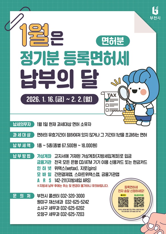 ºÎõ½Ã, 2026³â 1¿ù Á¤±âºÐ µî·Ï¸éÇã¼¼ 30¾ï ¿ø ºÎ°ú