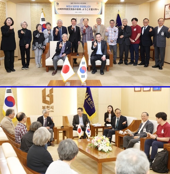 ³²µ¿°æ ºÎõ½Ã ºÎ½ÃÀåÀÌ Áö³­´Þ 30ÀÏ ºÎõ½ÃûÀ» ¹æ¹®ÇÑ ÀϺ» °¡¿Í»çŰ½Ã ½Ã¹Î±³·ùȸ¿Í ±â³äÃÔ¿µÀ» Çϰí ÀÖ´Ù. »çÁø À§ ¾ÕÁÙ ÀÇÀÚ ¿À¸¥ÂÊ ³²µ¿°æ ºÎõ½Ã ºÎ½ÃÀå. ÀÇÀÚ ¿ÞÂÊ ÀϺ» °¡¿Í»çŰ½Ã ½Ã¹Î±³·ùȸ °øµ¿´ëÇ¥ ¾ß¸¶´Ù Ÿī¿À. ¾Æ·¡´Â ȯ´ãÀ» ³ª´©´Â ¸ð½À.(»çÁø= ºÎõ½Ã Á¦°ø)