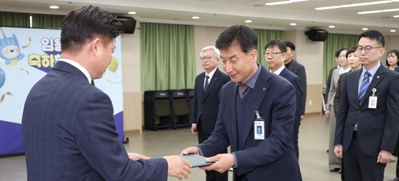 ¼ö¿©½Ä¿¡¼­´Â ù °øÁ÷¿¡ ÀÔ¹®ÇÏ´Â ½Å±Ô °ø¹«¿ø ´ëÇ¥°¡ °øÁ÷ ±Ô¹üÀÌ ´ã±ä ¼±¼­¹®À» ³¶µ¶ÇÏ¸ç °øÁ÷ÀÚÀÇ Ã¥ÀÓ°ú ½Ã¹ÎÀ» À§ÇÑ ºÀ»ç ÀÇÁö¸¦ ´ÙÁ³À¸¸ç, °¡Á·µéµµ ÇÔ²² Âü¼®ÇØ ±â³ä ÃÔ¿µÀ» ÁøÇàÇÏ¸ç ¶æ±íÀº ¼ø°£À» ÇÔ²²Çß´Ù.