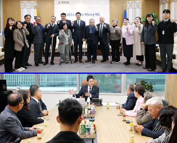 ±èÁø°æ °æ±âµµÀÇȸ ÀÇÀåÀÌ 25ÀÏ °æ±âµµÀå¾ÖÀκ¹Áö´Üü¿¬ÇÕȸ ´Üüµé°ú Á¤´ãȸ¸¦ °®°í ±â³äÃÔ¿µÀ» Çϰí ÀÖ´Ù. ±èÁø°æ ÀÇÀåÀº ¿ÃÇØ ´ëºñ ´ëÆø »è°¨ Æí¼ºµÈ °æ±âµµÀÇ ³»³âµµ Àå¾ÖÀκ¹Áö ¿¹»ê¾È¿¡ ´ëÇÑ °­·ÂÇÑ º¹¿ø ÀÇÁö¸¦ ¹àÇû´Ù.(»çÁø= °æ±âµµÀÇȸ Á¦°ø)