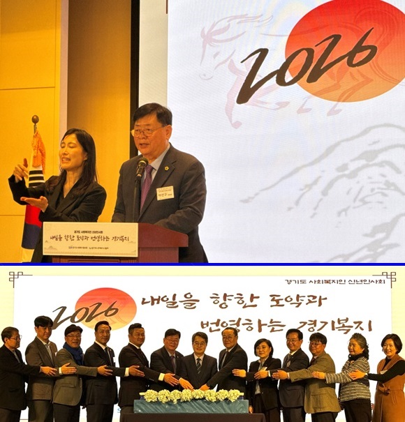 À̼±±¸ °æ±âµµÀÇȸ º¸°Çº¹ÁöÀ§¿øÀåÀÌ 7ÀÏ ¿­¸° ¡®2026³â °æ±âµµ »çȸº¹ÁöÀÎ ½Å³âÀλçȸ¡¯¿¡¼­ Ãà»ç¸¦ ÇÏ°í ³»ºóµé°ú ÃàÇ϶± Àý´ÜÀ» Çϸ鼭 ±â³äÃÔ¿µÀ» Çϰí ÀÖ´Ù.(»çÁø= °æ±âµµÀÇȸ Á¦°ø)