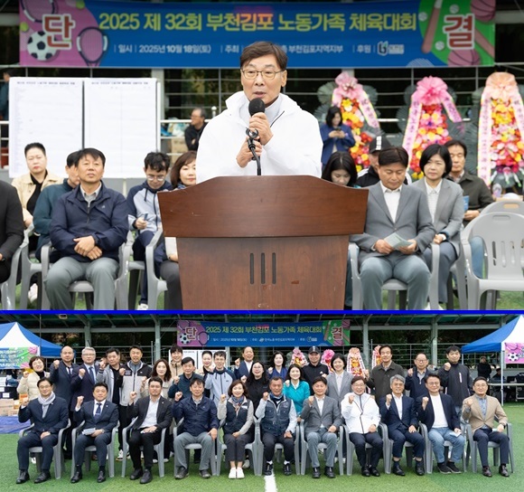 ±èº´Àü ºÎõ½ÃÀÇȸ ÀÇÀåÀÌ Áö³­ 18ÀÏ ºÎõüÀ°°ü Àܵð±¸Àå¿¡¼­ ¿­¸° ¡®2025 ºÎõ±èÆ÷ ³ëµ¿°¡Á· üÀ°´ëȸ¡¯¿¡¼­ Ãà»ç¸¦ Çϰí Âü¼® ³»ºóµé°ú ÇÔ²² ±â³äÃÔ¿µÀ» Çϰí ÀÖ´Ù.(¼­Áø= ºÎõ½ÃÀÇȸ Á¦°ø)