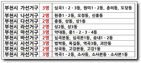 ºÎõ½ÃÀÇ¿ø 9°³ ¼±°Å±¸ ȹÁ¤ ¹× ¼±°Å±¸º° ¼±Ãâ ÀÇ¿ø ³»¿ªÀº ´ÙÀ½°ú °°´Ù