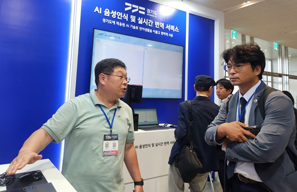 ¹Ú»óÇö °æ±âµµÀÇ¿ø(¿À¸¥ÂÊ)ÀÌ Áö³­ 23ÀÏ ¼ö¿øÄÁº¥¼Ç¼¾ÅÍ¿¡¼­ ¿­¸° ¡®G-BIO WEEK X AI CONNECT¡¯¿¡¼­ °æ±âµµ°¡ ÃßÁøÇÏ´Â AI ÇàÁ¤ Çõ½Å ÇöÀåÀ» »ìÆìº¸°í ÀÖ´Ù.(»çÁø= °æ±âµµ Á¦°ø)
