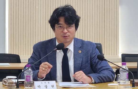 ¹Ú»óÇö °æ±âµµÀÇ¿øÀÌ Áö³­ 20ÀÏ ºÎõ½Ãû 5Ãþ âÀǽǿ¡¼­ ¿­¸° °æ±âµµÀÇȸ ÀÇÁ¤Á¤Ã¥ÃßÁø´ÜÀÇ ¡®ºÎõ»ç Áö¿ª Çö¾È Á¤Ã¥ Á¤´ãȸ¡¯¿¡¼­ ¹ß¾ðÇϰí ÀÖ´Ù.(»çÁø= °æ±âµµÀÇ¿ø Á¦°ø)