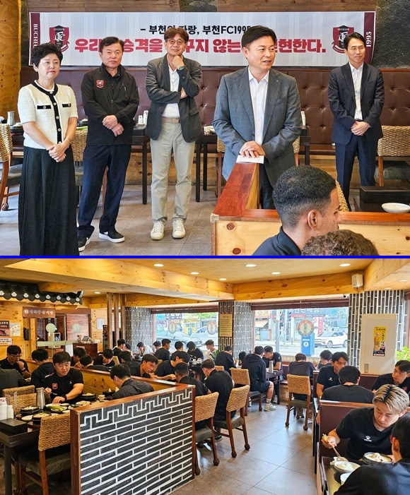 °£´ãȸ¿¡¼ ºÎõFC ±¸´ÜÁÖÀÎ Á¶¿ëÀÍ ºÎõ½ÃÀåÀº ¼±¼ö´ÜÀÇ ³ë°í¸¦ °Ý·ÁÇÏ°í ¡°³²Àº ¸ðµç °æ±â°¡ °á½ÂÀüÀ̶ó´Â °¢¿À·Î ÀÓÇØ ´Þ¶ó¡±°í ´çºÎÇß´Ù.
