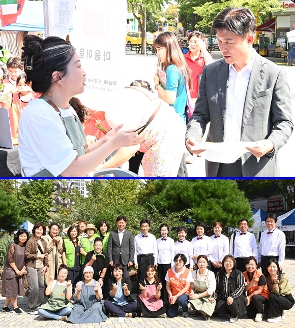 Á¶¿ëÀÍ ºÎõ½ÃÀåÀÌ Áö³­ 26ÀÏ ¡®2025 ¸¶À»°øµ¿Ã¼ ÇѸ¶´ç¡¯ Çà»ç ºÎ½º¸¦ ã¾Æ ´ëÈ­¸¦ ³ª´©°í, Çà»ç Âü°¡ °øµ¿Ã¼ ´ëÇ¥ÀÚµé°ú ±â³äÃÔ¿µÀ» Çϰí ÀÖ´Ù.(»çÁø= ºÎõ½Ã Á¦°ø)