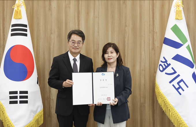 ±èµ¿¿¬ °Á±âµµÁö»ç°¡ 30ÀÏ ¿ÀÀü À±¸íÈñ ½ÅÀÓ °æ±âµµ¼­°üÀå¿¡°³ ÀÓ¸íÀåÀ» ¼ö¿©ÇÏ°í ±â³ÈÃÔ¿µÀ» Çϰí ÀÖ´Ù. (»çÁø= °æ±âµµ Á¦°ø)