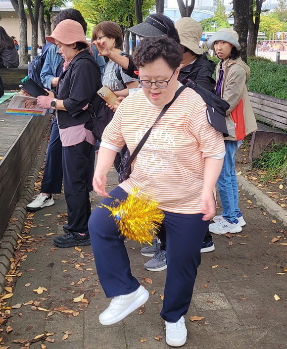 Á¶¿ëÀÍ ºÎõ½ÃÀåÀÌ ¡®Àå¾ÖÀΰú ÇÔ²²ÇÏ´Â ¾îºÎ¹Ù ¶Ñ¹ö±â´ëȸ¡¯¿¡ Âü¼®ÇØ ½Ã¹Îµé°ú ÇÔ±ú °È°í ÀÖ´Ù.(»çÁø= ºÎõÀÌÁ¾Çùµ¿Á¶ÇÕ¿¬ÇÕȸ Á¦°ø)