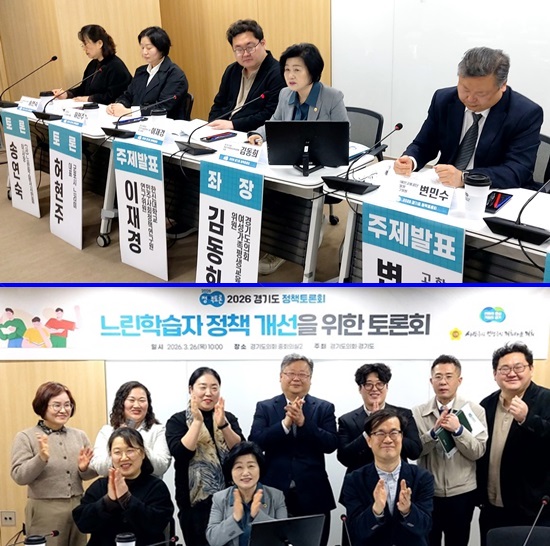 ±èµ¿Èñ °æ±âµµÀÇȸ ¿©¼º°¡Á·Æò»ý±³À°À§¿øÈ¸ ºÎÀ§¿øÀå(¿À¸¥ÂÊ¿¡¼­ µÎ ¹øÂ°)Àº 26ÀÏ ¿­¸° ¡®´À¸° ÇнÀÀÚ Á¤Ã¥ °³¼±À» À§ÇÑ Åä·Ðȸ¡¯¿¡¼­ ÁÂÀåÀ» ¸Ã¾Æ Åä·ÐÀ» ÁøÇàÇϰí ÀÖ´Ù.(°æ±âµµÀÇȸ Á¦°ø)
