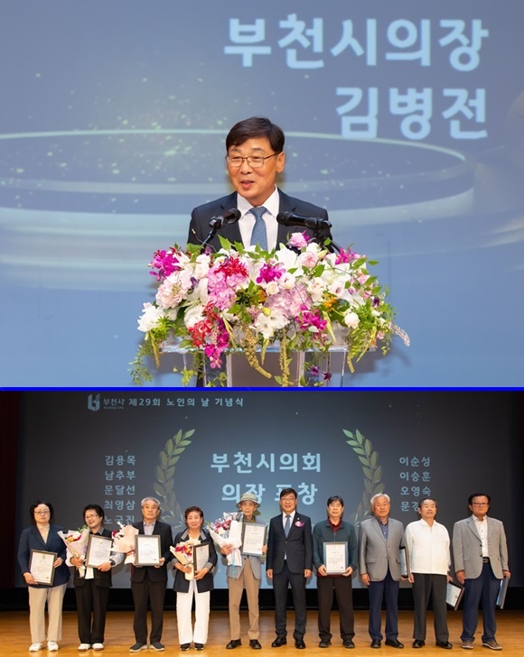 ±èº´Àü ºÎõ½ÃÀÇȸ ÀÇÀå, Á¦29ȸ ³ëÀÎÀÇ ³¯ ±â³ä½Ä Âü¼®¡¦ ¡°Á¸°æ°ú °¨»ç | |||