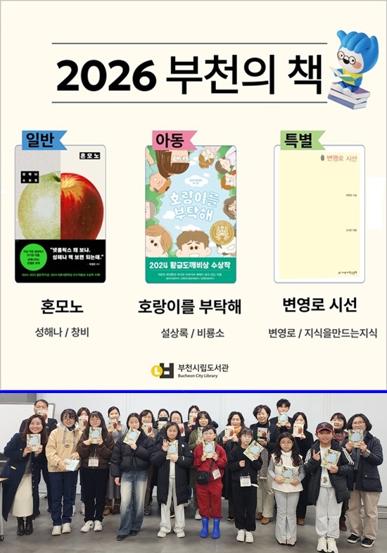 ºÎõ½Ã¸³µµ¼­°üÀº ½Ã¹Î°ú ÇÔ²² ÀÐ°í °ø°¨ÇÒ ¡®2026 ºÎõÀÇ Ã¥¡¯À¸·Î ¡ãÀÏ¹ÝºÐ¾ß ¡®È¥¸ð³ë¡¯(¼ºÇسª, âºñ) ¡ã¾Æµ¿ºÐ¾ß ¡®È£¶ûÀ̸¦ ºÎÅ¹ÇØ¡¯(¼³»ó·Ï, ºñ·æ¼Ò) ¡ãƯº°ºÐ¾ß ¡®º¯¿µ·Î ½Ã¼±¡¯(º¯¿µ·Î, Áö½ÄÀ» ¸¸µå´Â Áö½Ä) µî 3±ÇÀ» ÃÖÁ¾ ¼±Á¤Çß´Ù.