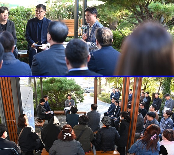 Á¶¿ëÀÍ ºÎõ½ÃÀåÀÌ 27ÀÏ °í¶ó°³°ø¿ø¿¡¼­ ¿­¸° ¡®Æ´¸¸³ª¸é, ÇöÀå¼ÓÀ¸·Î¡¯¿¡¼­ ¿ÀÁ¤±¸ »ïÁ¤µ¿ ·¹¹ÌÄÜ °øÀå ÀÏ´ë ȯ°æ¹Î¿ø ÇØ°á ¹æ¾ÈÀ» ¸ð»öÇϱâ À§ÇØ ÁֹΠ¹× ¾÷ü °ü°èÀÚµé°ú ÀǰßÀ» ³ª´©°í ÀÖ´Ù.(»çÁø= ºÎõ½Ã Á¦°ø)