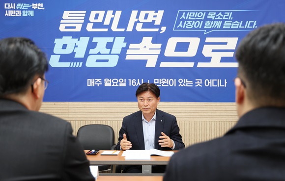 Á¶¿ëÀÍ ºÎõ½ÃÀåÀÌ 17ÀÏ ½Ãû¿¡¼­ ¿­¸° ¡®Æ´¸¸³ª¸é, ÇöÀå¼ÓÀ¸·Î¡¯ ¿¡ Âü¼®ÇØ ½Ã¹Îµé°ú ÇÔ±ú »ýȰ ¼Ó ºÒÆí ÇØ°áÀ» À§ÇÑ ¹æ¾ÈÀ» ³íÀÇÇϰí ÀÖ´Ù.(»çÁø= ºÎõ½Ã Á¦°ø)