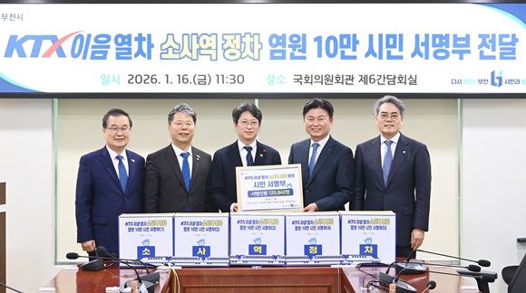 ¿ÞÂʺÎÅÍ ¼­¿µ¼® ±¹È¸ÀÇ¿ø(ºÎõ½Ã°©)¡¤À̰ÇÅ ±¹È¸ÀÇ¿ø(ºÎõ½Ãº´), È«Áö¼± ±¹Åä±³ÅëºÎ Á¦2Â÷°ü, Á¶¿ëÀÍ ºÎõ½ÃÀå, ±è±âÇ¥ ±¹È¸ÀÇ¿ø(ºÎõ½ÃÀ»)ÀÌ Áö³­ 16ÀÏ ±¹È¸ÀÇ¿øÈ¸°ü Á¦6°£´ãȸ½Ç¿¡¼­ ÃÑ 12¸¸ 5õ842¸íÀÇ ¼­¸íÀÌ ´ã±ä KTX-ÀÌÀ½¿­Â÷ ¼Ò»ç¿ª Á¤Â÷¸¦ Ã˱¸ÇÏ´Â ¼­¸íºÎ¸¦ ±¹Åä±³ÅëºÎ¿¡ Àü´ÞÇÏ°í ±â³äÃÔ¿µÀ» Çϰí ÀÖ´Ù.(»çÁø= ºÎõ½Ã Á¦°ø)​
