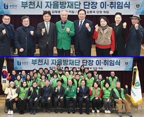 ½Ã Àç³­¾ÈÀü°ú¿¡ µû¸£¸é ºÎõ½Ã ÀÚÀ²¹æÀç´Ü ÀÌ¡¤ÃëÀÓ½Ä Çà»ç´Â ÀÌÀÓÇÏ´Â ±èÅ¿õ Àü ´ÜÀå¿¡°Ô °¨»çÆÐ Àü´Þ ¹× ÀÌÀӻ翡 À̾î, »õ·Î ¼±ÀÓµÈ ±èµ¿±¹ ´ÜÀå¿¡°Ô À§ÃËÀå ¼ö¿© ¹× ÃëÀÓ»ç, Á¶¿ëÀÍ ½ÃÀåÀÇ Ãà»ç, Âü¼®ÀÚ ±â³äÃÔ¿µ ¼øÀ¸·Î ÁøÇàµÆ´Ù.