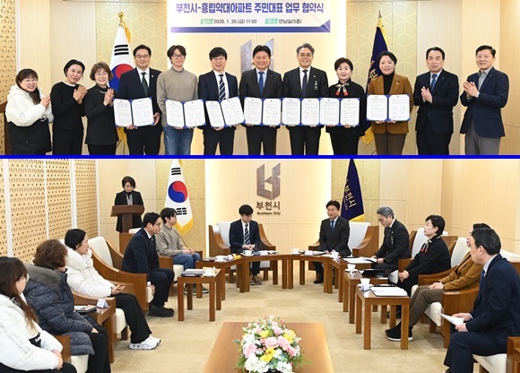 ºÎõ½Ã´Â Áö´Ñ 1¿ù 30ÀÏ ½Ãû 4Ãþ ¸¸³²½Ç¿¡¼­ È︳¾à´ë¾ÆÆÄÆ® ÁֹδëÇ¥, Çö´ëÈ︳ÅëÇÕÀç°ÇÃàÃßÁøÁغñÀ§¿øÈ¸¿Í ÇÔ²² ¡®Çö´ë°Ç¼³ º¸À¯ ÁöºÐ ±âºÎä³³(¹«»ó±Í¼Ó)À» À§ÇÑ ¾÷¹«Çù¾à¡¯À» ü°áÇÏ°í ±â³äÃÔ¿µÀ» Çϰí ÀÖ´Ù, ¾Æ·¡´Â Â÷´ãÀ» ³ª´©´Â ¸ð½À.(»çÁø= ºÎõ½Ã Á¦°ø)