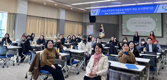 ¡®¶Ñ¹÷¶Ñ¹÷ ¸¶À»±³½Ç¡¯ ¿î¿µ¿¡ µû¸¥ »çÀü ¼³¸íȸ Âü¼®ÀÚµéÀÌ ±â³äÃÔ¿µÀ» Çϰí ÀÖ´Ù.(»çÁø= ºÎõ½Ã Á¦°ø)