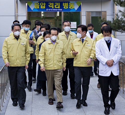 Á¤¼¼±Õ ±¹¹«ÃѸ®´Â 8ÀÏ ¿ÀÀü °æ±âµµÃ» Àç³¾ÈÀü´ëÃ¥º»ºÎ¸¦ ¹æ¹®ÇØ °æ±âµµÀÇ ½ÅÁ¾ Äڷγª¹ÙÀÌ·¯½º °¨¿°Áõ ÇöȲ°ú ´ëÀÀ »óȲÀ» Á¡°ËÇÏ°í °ü°èÀÚµéÀ» °Ý·ÁÇß´Ù.