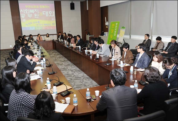 ¿À¼¼¿ø »çȸº¹Áö°úÀå »çȸ·Î ÁøÇàµÈ ÇöÀå´ëÈ­´Â ¡âÁö¿ª»çȸ ³»¿¡¼­ »çȸº¹Áö°ø¹«¿øÀÇ ¿ª·® °­È­ ¡â»çȸº¹Áö ÁõÁø ¹× °³¼± ¹æ¾È ¡â±âŸ »çȸº¹ÁöÁ¤Ã¥ Àü¹Ý¿¡ °üÇÑ »çÇ× µî 3°¡Áö ¼ÒÁÖÁ¦¸¦ Áß½ÉÀ¸·Î ÁøÇàµÆ´Ù.