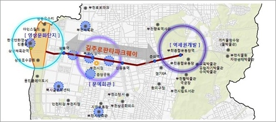 ¡ã1´Ü°è(2014³â~2020³â)= CTŬ·¯½ºÅÍÁ¸(Çѱ¹¸¸È­ÀÚ·á¿ø, ¿µ»ó¹®È­ÀÎ ¸¶À», À¯º¸Áö Àܵð±¤Àå, CT ÁýÀûÈ­ ±âÁö A±¸¿ª)Àº °ø°ø(ºÎõ½Ã)°ú ¹Î°£ »ç¾÷ÀÚ°£¿¡ ºÎÁö ¸Å°¢À» ÃßÁøÇϰí, ¹®È­°ü±¤Á¸(º¹ÇÕ¹®È­°ø°£, Å׸¶ÆÄÅ©, Å׸¶»ó°¡, ºñÁî´Ï½ºÈ£ÅÚ, Çѹ®È­ Å׸¶°Å¸®)´Â ¹Î°£»ç¾ÐÀÚ¿¡°Ô ºÎÁö¸¦ ÀÓ´ëÇϰí, ÆÄÅ©°¡µçÁ¸(¾î¿ï¸²ºê¸´Áö, ¹®È­°ø¿ø, »ýŰø¿ø)Àº °ø°ø(ºÎõ½Ã)ÀÌ ÃßÁøÇÏ´Â °ÍÀÌ´Ù.