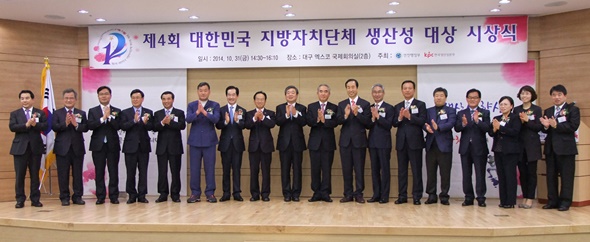 ºÎõ½Ã°¡ 10¿ù31ÀÏ ´ë±¸ EXCO¿¡¼ ¿¸° ¡®2014 ´ëÇѹα¹ Áö¹æÀÚÄ¡´Üü »ý»ê¼º ´ë»ó¡¯ ½Ã»ó½Ä¿¡¼ ¿ì¼ö»ç·ÊºÎ¹®ÀÇ ÃÖ°íÀÇ »óÀÎ ¾ÈÀüÇàÁ¤ºÎÀå°ü ǥâÀ» ¼ö»ó, 2011³â À¸¶äÇàÁ¤»óÀ» ½ÃÀÛÀ¸·Î 4³â ¿¬¼Ó »ý»ê¼º ´ë»óÀ» ¼ö»óÇÏ´Â ¿µ¿¹¸¦ ¾È¾Ò´Ù.