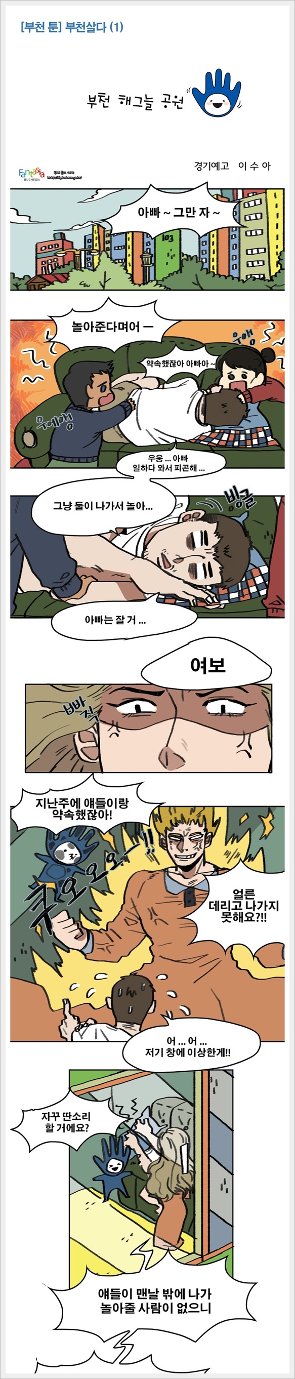 ¡®ºÎõ Å÷- ºÎõ»ì´Ù¡¯ÀÇ Ã¹ ¹øÂ° ½Ã¸®Áî´Â °æ±â¿¹°í À̼ö¾Æ ÇлýÀÌ ±×¸° ÀÛǰÀ¸·Î, Áö³ÇØ °³¹ßµÈ ºÎõ½Ã ¼Ò¼È Àü¿ë ¾ÆÀÌÄÜ(SIP) ¡®ºÎõÇڽ硯À» Ȱ¿ëÇØ Àç¹ÌÀÖ´Â ¸¸È½ºÅ丮·Î ¡®Çر״ðø¿ø¡¯À» ¼Ò°³Çϰí ÀÖ´Ù. ºÎõ½Ã ºí·Î±×(blg.bucheon.go.kr/1838¤ý¹Ù·Î °¡±â Ŭ¸¯)¿Í ºÎõ½Ã ÆäÀ̽ººÏ(www.facebook.com/bucheon.fb¤ý¹Ù·Î °¡±â Ŭ¸¯)À» ÅëÇØ È®ÀÎÇÒ ¼ö ÀÖ´Ù.