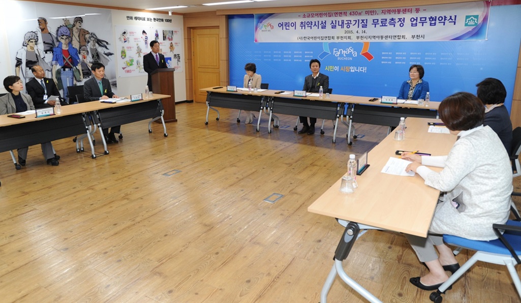 ºÎõ½Ã´Â 14ÀÏ ¿ÀÀü ½Ãû ¸¸³²½Ç¿¡¼ ¿¬¸éÀû 430§³¹Ì¸¸ÀÇ ¼Ò±Ô¸ð ¾î¸°ÀÌÁý°ú Áö¿ª¾Æµ¿¼¾ÅÍ µî ¾î¸°ÀÌ Ãë¾à½Ã¼³ ½Ç³» °ø±âÁú ¹«·á ÃøÁ¤À» À§ÇØ (»ç)ºÎõ½Ã ¾î¸°ÀÌÁý¿¬ÇÕȸ(ȸÀå ÀÌ¿µÈñ), ºÎõ½Ã Áö¿ª¾Æµ¿¼¾ÅÍ¿¬ÇÕȸ(ȸÀå ±è°æÈñ)¿Í ¾÷¹«Çù¾àÀ» ü°áÇß´Ù.