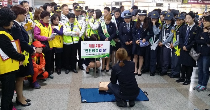 ºÎõ½Ã´Â Áö³­ 4ÀÏ ¾ÈÀüÁ¡°ËÀÇ ³¯À» ¸Â¾Æ Àüö 1È£¼± ºÎõ¿ª¿¡¼­ °ø¹«¿ø, À¯°ü±â°ü, ¹Î°£´Üü, ¹Î°£±â¾÷ü µî 300¿©¸íÀÌ Âü¼®ÇÑ °¡¿îµ¥ Á¦236Â÷ ¾ÈÀü¹®È­¿îµ¿ È«º¸ Ä·ÆäÀÎÀ» ½Ç½ÃÇß´Ù.