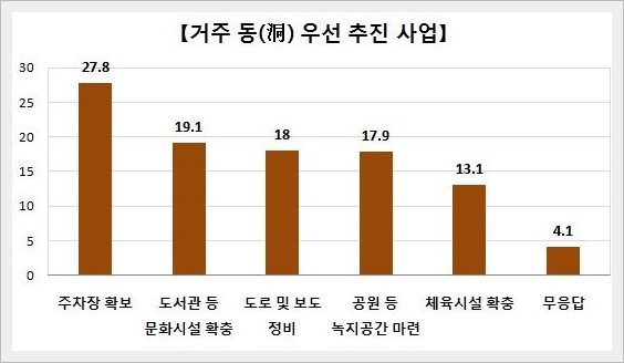ºÎõ½Ã¹ÎÀº °ÅÁÖ µ¿(Ô×) ¿ì¼± ÃßÁø»ç¾÷ 1¼øÀ§·Î ¡®ÁÖÂ÷Àå È®º¸¡¯(27.8%)¸¦ ²Å¾ÒÀ¸¸ç, ´ÙÀ½À¸·Î ¡®µµ¼°ü µî ¹®È½Ã¼³ È®Ãæ¡¯(19.1%), ¡®µµ·Î ¹× º¸µµ Á¤ºñ¡¯(18%), ¡®°ø¿ø µî ³ìÁö°ø°£ ¸¶·Ã¡¯(17.9%), ¡®Ã¼À°½Ã¼³ È®Ãæ¡¯(13.1%) ¼øÀ¸·Î ³ªÅ¸³µ´Ù.