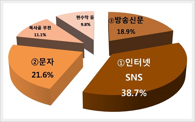 ¶Ç ºÎõ½Ã ÁÖ¿äÁ¤Ã¥¿¡ ´ëÇÑ ÁÖ¿ä ÀÎÁö°æ·Î´Â ¡®ÀÎÅͳݤýSNS¡¯(38.7%), ¡®ÈÞ´ëÆù ¹®ÀÚ¡¯(21.6%), ¡®¹æ¼Û¤ý½Å¹®¡¯(18.9%) µîÀÇ ¼øÀ¸·Î Á¶»çµÆ°í, ¿¬·Éº°·Î´Â 20~30´ë´Â ÀÎÅͳݰú SNS¸¦, 40¼¼ ÀÌ»óÀº ¹æ¼Û¤ý½Å¹®À» ÅëÇØ ½ÃÀÇ ÁÖ¿ä Á¤Ã¥À» Á¢ÇÏ´Â °ÍÀ¸·Î ³ªÅ¸³µ´Ù.