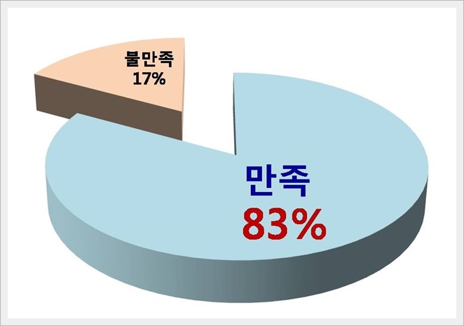 ½ÃÁ¤È«º¸ ¸¸Á·µµ´Â 83%·Î, 2012³â 74.3% ´ëºñ 8.7%p »ó½ÂÇß°í, Áö¿ªº°·Î´Â ¿ø¹Ì±¸ 82.6%, ¼Ò»ç±¸ 79.6%, ¿ÀÁ¤±¸ 74.1% ¼øÀ̾ú´Ù.