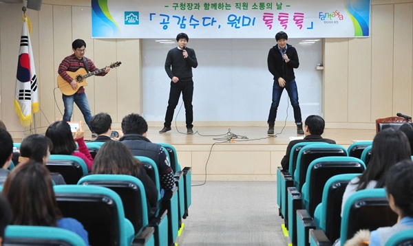 À̳¯ Çà»ç´Â Áö³­ÇØ 10¿ù ¡®6±Þ Á÷¿ø°ú ¼ÒÅëÀÇ ³¯¡¯, 12¿ù ¡®½Å±Ô Á÷¿ø°ú µµ½Ã¶ô µ¥ÀÌ¡¯¿¡ ÀÌÀº 3¹øÂ° °®´Â ´ëÈ­ÀÇ ³¯·Î ±¸Ã»¤ýµ¿¿¡ ±Ù¹«ÇÏ´Â 8±Þ Á÷¿øµéÀ» ´ë»óÀ¸·Î ½Ç½ÃÇß´Ù.