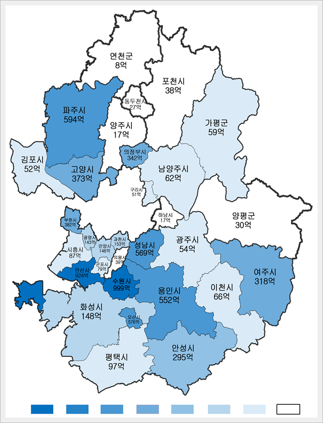 ±×¹Û¿¡ ¡ã¾È¼º½Ã(295¾ï), ¡ã°úõ½Ã(153¾ï), ¡ãÈ­³²½Ã(148¾ï), ¡ã¾È¾ç½Ã(146¾ï), ¡ã±¤¸í½Ã(142¾ï), ¡ãÆòÅýÃ(96¾ï), ¡ã½ÃÈï½Ã(87¾ï), ¡ã±ºÆ÷½Ã(78¾ï), ¡ãÀÌõ½Ã(65¾ï), ¡ã³²¾çÁÖ½Ã(62¾ï), ¡ã°¡Æò±º(58¾ï), ¡ã±¤ÁÖ½Ã(53¾ï), ¡ã±èÆ÷½Ã(51¾ï), ¡ãÀǿսÃ(39¾ï), ¡ãÆ÷õ½Ã(37¾ï), ¡ã¾çÆò±º(30¾ï), ¡ãµ¿µÎõ½Ã(26¾ï), ¡ãÇϳ²½Ã(17¾ï), ¡ã¾çÁÖ½Ã(16¾ï), ¡ã¿¬Ãµ±º(8¾ï) ¼øÀ¸·Î ³ªÅ¸³µ´Ù.