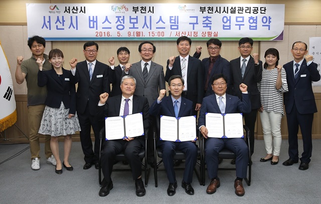 ºÎõ½Ã¿Í ºÎõ½Ã ½Ã¼³°ü¸®°ø´ÜÀº Áö³ 9ÀÏ ¿ÀÈÄ 3½Ã Ãæ³² ¼»ê½Ãû »óȲ½Ç¿¡¼ ¹ö½ºÁ¤º¸½Ã½ºÅÛ(BIS) ±¸ÃàÀ» À§ÇÑ ¾÷¹« Çù¾àÀ» ü°áÇß´Ù. »çÁø ¿ÞÂʺÎÅÍ ½Å³²µ¿ ºÎõ½Ã ±³Åëµµ·Î±¹Àå, Á¶¿µÇÐ ¼»ê½Ã °Ç¼³µµ½Ã±¹Àå, ÀÓ¸íÈ£ ºÎõ½Ã ½Ã¼³°ü¸®°ø´Ü ÀÌ»çÀåÀÌ Çù¾àÀ» ü°áÇÑ µÚ ±â³äÃÔ¿µÀ» Çϰí ÀÖ´Ù. 2016.5.9 /»çÁø= ºÎõ½Ã Á¦°ø
