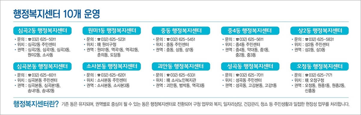 ¿ø¹Ì±¸Ã» ÆóÁöÇϰí 5°³ Ã¥ÀÓµ¿(½É°î2µ¿¤ý¿ø¹Ì1µ¿¤ýÁßµ¿¤ýÁß4µ¿¤ý»ó2µ¿) ÇàÁ¤º¹Áö¼¾ÅÍ, ¼Ò»ç±¸Ã» ÆóÁöÈ÷°í 3°³ Ã¥ÀÓµ¿(½É°îº»µ¿¤ý¼Ò»çº»µ¿¤ý±«¾Èµ¿) ÇàÁ¤º¹Áö¼¾ÅÍ, ¿ÀÁ¤±¸Ã» ÆóÁöÇϰí 2°³ Ã¥ÀÓµ¿(¼º°îµ¿¤ý¿ÀÁ¤µ¿) ÇàÁ¤º¹Áö¼¾ÅÍ.