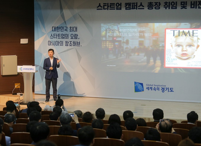 26ÀÏ ¿ÀÀü ¼º³²½Ã ¼ÒÀç °æ±âµµ ½ºÅ¸Æ®¾÷ Ä·ÆÛ½º 1Ãþ ÄÁÆÛ·±½ºÈ¦¿¡¼­ ¿­¸° ¡®½ºÅ¸Æ®¾÷ Ä·ÆÛ½º ÃÑÀå ÃëÀÓ ¹× ºñÀü ¼±Æ÷½Ä¡¯¿¡¼­ ½ºÅ¸Æ®¾÷ Ä·ÆÛ½º ÃÊ´ë ÃÑÀåÀ¸·Î ÃëÀÓÇÑ ±è¹ü¼ö īī¿ÀÀÇÀåÀÌ ½ºÅ¸Æ®¾÷ Ä·ÆÛ½º ºñÀü ¹× ¿î¿µ Àü·«À» ¹ßÇ¥Çϰí ÀÖ´Ù. 2016.5.26 »çÁø= °æ±âµµÃ» Á¦°ø