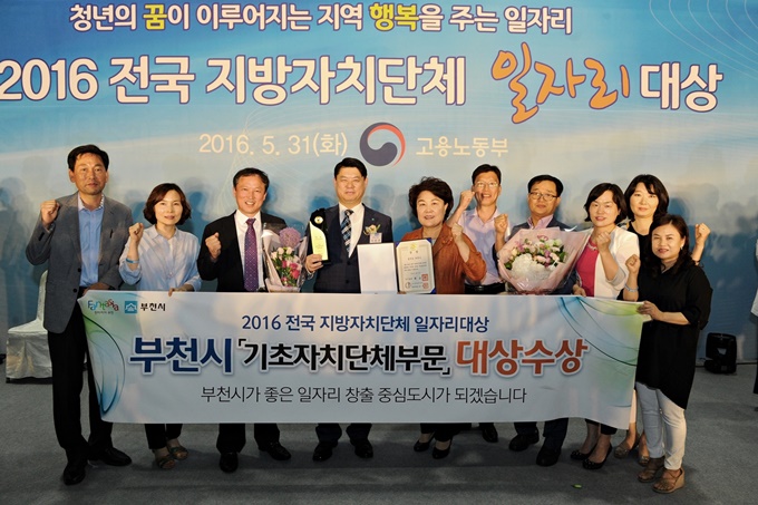 ºÎõ½Ã°¡ 5¿ù31ÀÏ ¿­¸° ¡®2016 Àü±¹ Áö¹æÀÚÄ¡´Üü ÀÏÀÚ¸® ´ë»ó ¹× Áö¿ªÀÏÀÚ¸® ÇѸ¶´ç¡¯¿¡¼­ ±âÃÊÀÚÄ¡´Üü ºÎ¹® ´ë»óÀ» ¼ö»óÇÑ µÚ, ÀÌÇÑ±Ô ºÎ½ÃÀåÀ» ºñ·ÔÇØ ÀÌÃᱸÀçÁ¤°æÁ¦±¹Àå, ÀÌ¿ë¿ì ÀÏÀÚ¸®°æÁ¦°úÀåÀ» ºñ·ÔÇÑ ÀÏÀÚ¸®°æÁ¦°ú Á÷¿øµéÀÌ ±â³äÃÔ¿µÀ» Çϰí ÀÖ´Ù. 2016.6.1 »çÁø= ºÎõ½Ã Á¦°ø