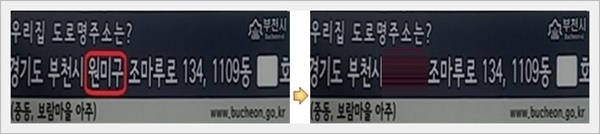 ¿¡¸¦ µé¾î ºÎõ½ÃûÀÇ °æ¿ì µµ·Î¸íÁÖ¼Ò°¡ ¡®°æ±âµµ ºÎõ½Ã ¿ø¹Ì±¸ ±æÁÖ·Î 210¡¯¿¡¼­ ±¸ ¸íΏ¸ »èÁ¦µÈ ¡®°æ±âµµ ºÎõ½Ã ±æÁÖ·Î 210¡¯À¸·Î º¯°æµÈ´Ù.