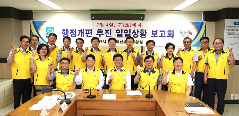 ±è¸¸¼ö ½ÃÀå°ú ÀÌ햔±Ô ºÎ½ÃÀåÀ» ºñ·ÔÇÑ ºÎõ½Ã °£ºÎ °ø¹«¿øµéÀÌ 1ÀÏ ¿ÀÀü ½Ãû 3Ãþ ÇàÁ¤Çõ½Å ÃßÁø»óȲ»óȲ½Ç¿¡¼­ ¿À´Â 4ÀÏÀÚ·Î ±¸Ã» ÆóÁö¿¡ µû¸¥ ÇàÁ¤°³Æí ÃßÁø ÀÏÀÏ »óȲ º¸°íȸ¸¦ °®°í ÆÄÀÌÆÃÀ» ¿ÜÄ¡°í ÀÖ´Ù. 2016.7.1