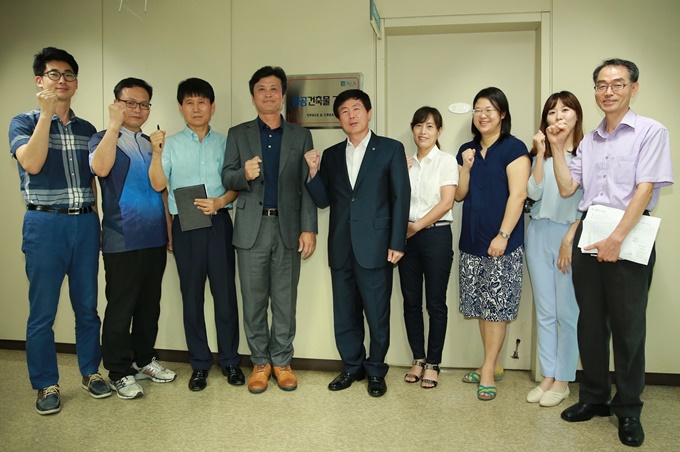 ±è¸¸¼ö ºÎõ½ÃÀå°ú ÀÌ¿µ¸¸ ÁÖÅñ¹ÀåÀ» ºñ·ÔÇÑ °ø°ø°ÇÃ๰ ±âȹ´Ü TFÆÀ¿øµéÀÌ ÆÄÀÌÆÃÀ» ¿ÜÄ¡°í ÀÖ´Ù.