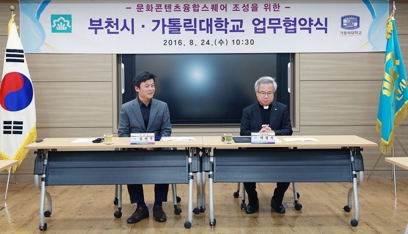 ºÎõ½Ã¿Í °¡Å縯´ëÇб³´Â 24ÀÏ ¿ÀÀü ½Ãû ¸¸³²½Ç¿¡¼­ »óµ¿¿µ»ó¹®È­»ê¾÷´ÜÁö¿¡ µé¾î¼­´Â À¥Å÷À¶ÇÕâÁ¶¼¾ÅÍ ³» ¡®¹®È­ÄÜÅÙÃ÷À¶ÇÕ½ºÄù¾î¡¯ Á¶¼ºÀ» À§ÇÑ ¾÷¹«Çù¾àÀ» ü°áÇÏ°í ±â³äÃÔ¿µÀ» Çϰí ÀÖ´Ù. 2016.8.24