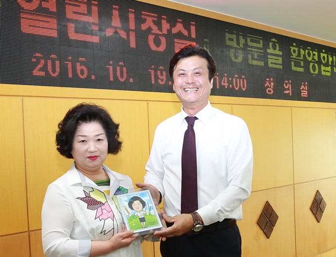 ±è¸¸¼ö ½ÃÀåÀÌ 19ÀÏ ¡®¿­¸° ½ÃÀå½Ç¡¯À» ãÀº 3õ¹øÂ° ½Ã¹Î ÃÖÇýÁ¸ ¾¾¿¡°Ô ij¸®Ä¿Ã³¸¦ ¼±¹°Çϰí ÀÖ´Ù.